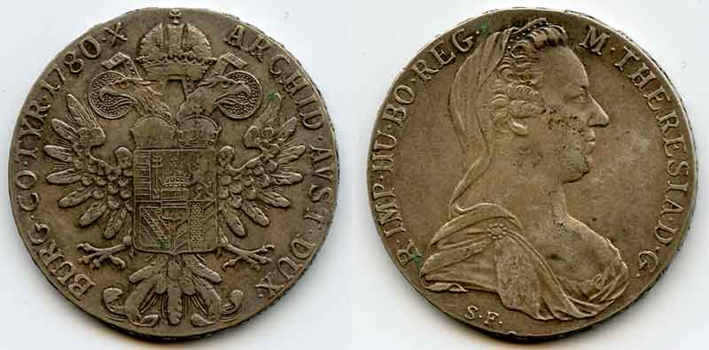 A Maria Theresa Dollar (MTD), the famed trade coin which circulated in Ethiopia for many years. It was estimated 50 million of the coins were in circulation prior to the Italian occupation.